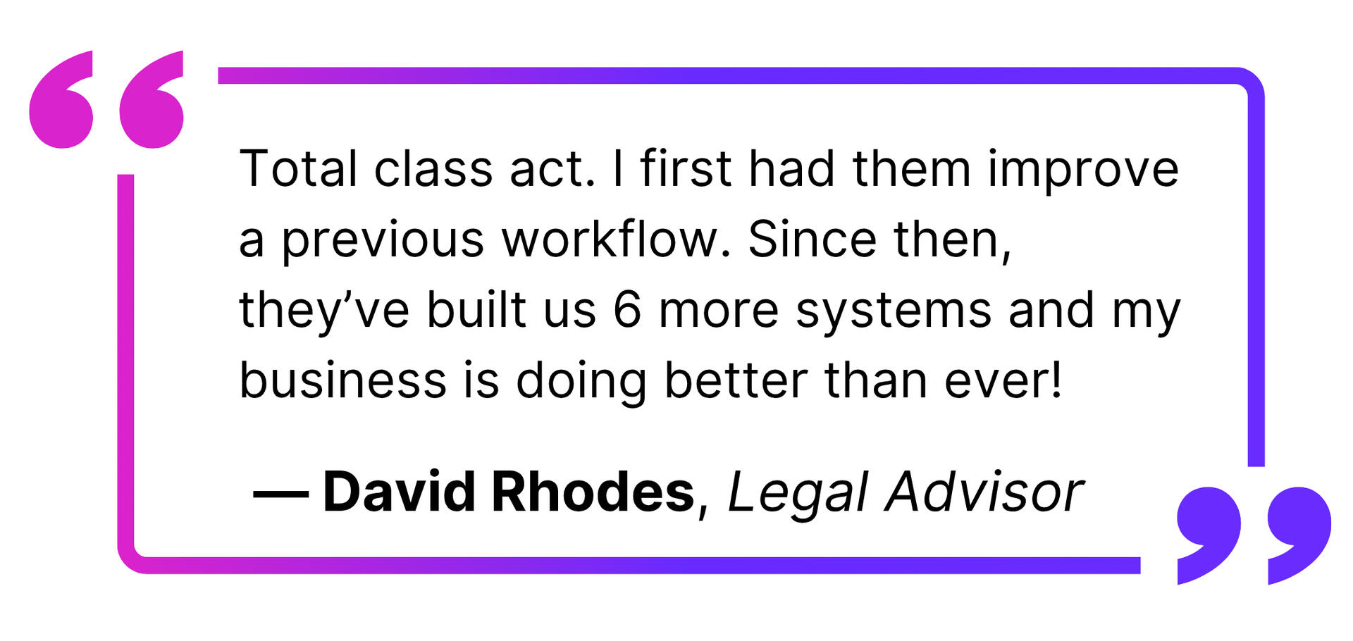 By replacing manual work with automation, you get faster growth with less effort. Our systems help you scale output efficiently. While manual processes grow linearly, automated systems create compounding gains across lead gen, onboarding, and internal ops.