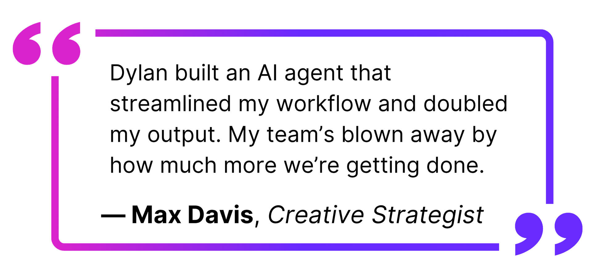 I’m Dylan, founder of VibeHook. With a background in marketing, I helped scale a portfolio of online brands to $32M+. After building automations for creators, sales teams, and marketers, I now help teams like yours unlock growth through AI-powered systems.